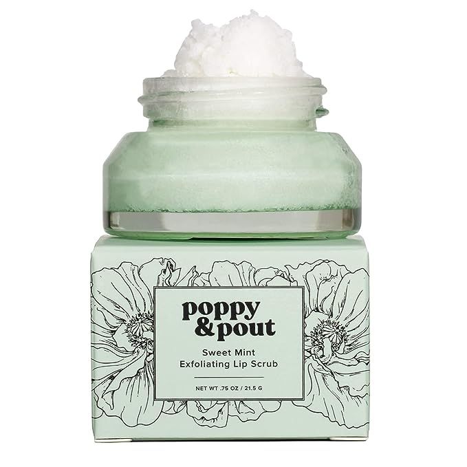 Poppy & Pout 100% Natural Lip Scrub, Exfoliating Lip Treatment, In Hand-filled Recyclable Glass Jars, Cruelty Free (Sweet Mint)
