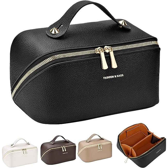 Elevate your travel game with the sleek HUANLANG 2023 Upgraded Portable Cosmetic Bag. Expertly crafted from premium PU leather, this chic and waterproof pouch safeguards your beauty investments with unparalleled ease. The expansive and cleverly designed interior, featuring convenient compartments and pockets, allows for meticulous organization of makeup tools, skincare potions, and even travel essentials. A robust handle paired with a user-friendly double zipper affords effortless accessibility and portability, ensuring that your beauty regime remains uninterrupted wherever your journey takes you.