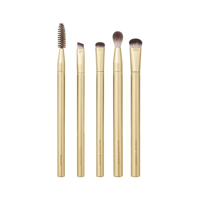 Unleash the power of your gaze with the EcoTools Brightening Eye Set, your new secret weapon for mastering the art of eye makeup. Expertly designed for the eco-conscious beauty aficionados, our set boasts an array of four meticulously crafted brushes: the precise angled liner brush, the defining spoolie brush, the seamless blending crease brush, and the detail-oriented crease shadow brush, topped off with a precision smudge brush for that flawless finish. Constructed to work harmoniously with liquid, cream, or powder products, these essential tools elevate your eye makeup game, allowing you to blend, define, and accentuate with professional results.