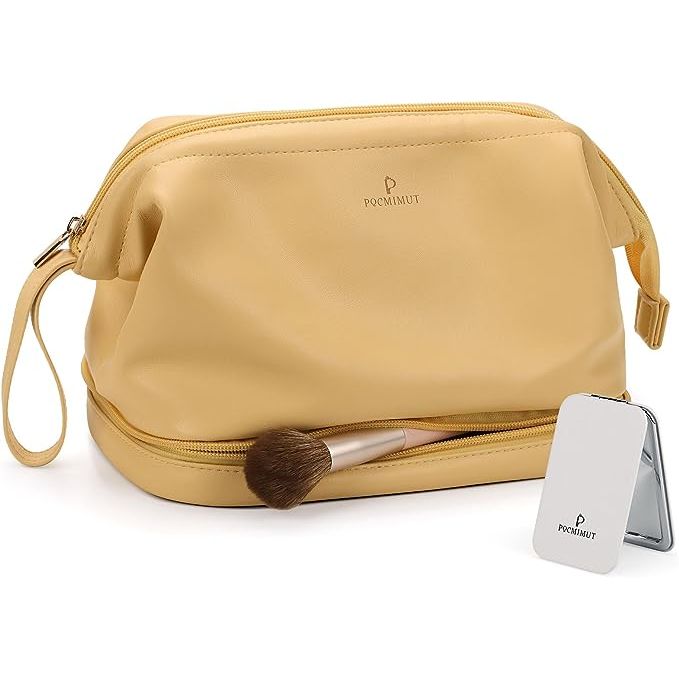 Our chic makeup bag’s clever double-layer construction offers a spacious haven for your treasured beauty items. It’s thoughtfully engineered to accommodate everything from your cherished skincare potions to the most elaborate makeup array, including brushes, eyeliners, and luscious lip colors. Built-in convenience shines with the inclusion of a handy mirror, enabling touch-ups anytime, anywhere. Ideal for daily use or jet-setting adventures, this versatile bag complements your dynamic lifestyle and keeps you organized with style.