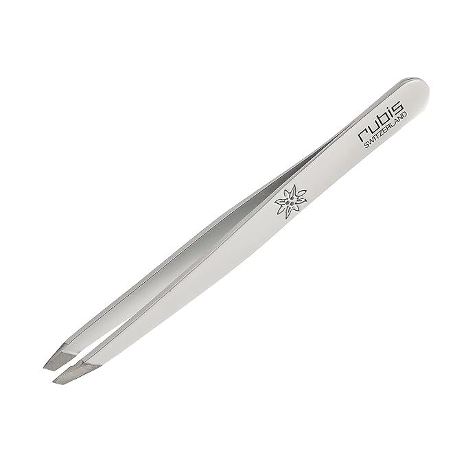 Rubis Classic Stainless Steel Slanted Tweezers for Precise Eyebrows and Hair Removal, 1K105, White,Rubis Switzerland Swiss Made World Renowned Precision